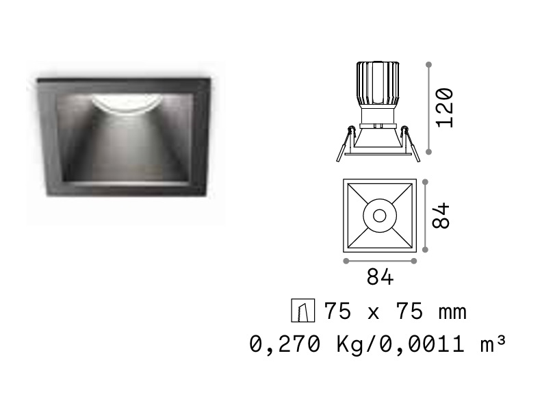 Technische Daten für "Ideal Lux GAME SQUARE 12W LED Einbaustrahler Schwarz/Weiss 192406"