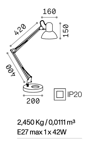 Technische Daten für "Ideal Lux WALLY H80cm Büro Schreibtischleuchte Schwarz Matt Lackiert 061191"