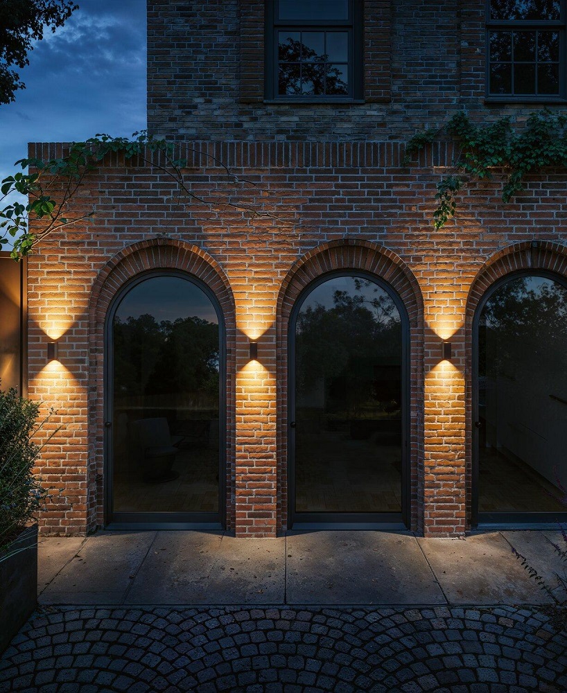 Mit der IP44.de IEM.2 LED UP and DOWN Outdoor Wandleuchte LED setzen Sie Ihre Hausfassade in Szene und sorgen zugleich für ausreichend Licht bei Dunkelheit. Denn die funktionale Leuchte des deutschen Markenherstellers gibt ihr Licht nach oben und unten ab und hebt mit ihrem eindrucksvollen Lichtbild an der Wand die Architektur Ihres Hauses hervor. Darüber hinaus verfügt die Outdoor-Lampe über stabile und langlebige Materialien wie Aluminium und Sicherheitsglas. Die schicke IEM.2 ist in zwei klassischen Farboberflächen verfügbar: Schwarz RAL9005 und Anthrazit RAL7016. Mit einer Gesamthöhe von 15 cm besitzt die Wandleuchte ein kompaktes Design. Die Kollektion umfasst zwei Wandleuchten mit einseitigem oder beidseitigem Lichtaustritt. Durch den beidseitigen Lichtaustritt nach oben und unten sorgt sie jedoch mit einer hohen Helligkeit von 638 Lumen für einen hervor ragenden Insektenschutz. Die warmweiße Lichtfarbe 2700K wird an der Hausfassade reflektiert und somit blendfrei abgegeben. Mehrere Leuchten in Reihe gesetzt ergeben zudem ein stimmiges Gesamtbild. Durch robuste Materialien wie Aluminium zeichnet sich die Wandlampe zudem durch eine Unempfindlichkeit gegenüber Regen, Frost , Sonne und Meeresluft aus. Die Schutzart IP65 gibt zudem an, dass die cut nicht nur Regen standhält, sondern auch staubdicht ist. Das eingebaute LED-Leuchtmittel mit 16 Watt besitzt eine lange Lebensdauer von bis zu 50.000 Stunden. In Kombination mit einem externen Phasendimmer können Sie die cut zudem dimmen. Optional kann die Wandleuchte auch mit DALI (KNX) für Moderne Netztwerk Häuser bestellt werden.