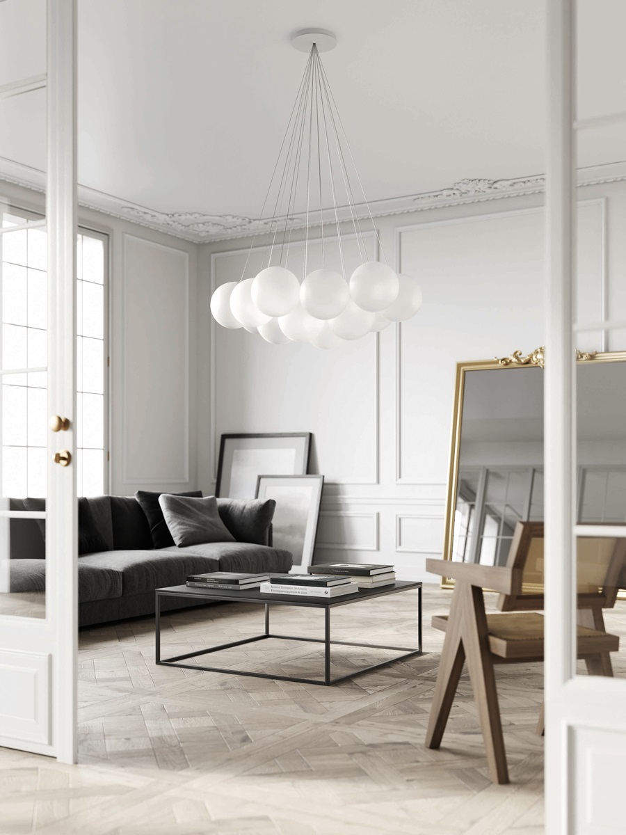 Diese Designerleuchte Random Cloud wurde von der Designerin Chia-Ying Lee entworfen und dem Hersteller Lodes in Italien hergestellt. Sie ist der moderne Kronleuchter in der heutigen Zeit. Ihre Glas Kugeln erinnern an schwebende Kosmos Elemente. Sie verschönert jedes Umfeld mit ihrem eleganten Design. Bestellbar ist die Random Cloud in verschiedenen Farben und Ausführungen. Dazu gibt es die Glas Kugeln in zwei unterschiedlichen Größen von 23 oder 28 cm vom Durchmesser. Die Glaskugeln lassen sich einzeln Höhenverstellen. Die Random Cluster eignet sich perfekt für eine Galerieaufhängung. Die Glaskugeln sind Staubdicht verschlossen. Das LED-Leuchtmittel und Glaskugeln sind einzeln austauschbar. Sei es das hellere Warme Licht von 3000 Kelvin, oder aber das etwas wärmere Warm weißen Licht von 2700 Kelvin. Die Random Cluster lässt sich Problemlos über einen Phasenanschnittsdimmer oder über einem Casambi Modul, sowie Dali Modul anstuern und dimmen. Das passende Zubehör finden Sie unten. Sollten Sie noch Fragen oder Anregungen haben, können Sie uns gerne kontaktieren. Wir helfen Ihnen gerne weiter.