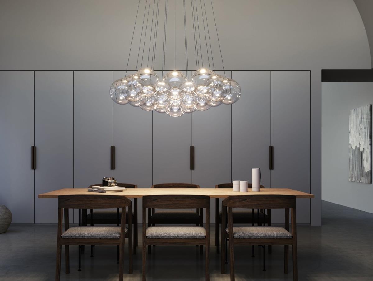 Diese Designerleuchte Random Cloud wurde von der Designerin Chia-Ying Lee entworfen und dem Hersteller Lodes in Italien hergestellt. Sie ist der moderne Kronleuchter in der heutigen Zeit. Ihre Glas Kugeln erinnern an schwebende Kosmos Elemente. Sie verschönert jedes Umfeld mit ihrem eleganten Design. Bestellbar ist die Random Cloud in verschiedenen Farben und Ausführungen. Dazu gibt es die Glas Kugeln in zwei unterschiedlichen Größen von 23 oder 28 cm vom Durchmesser. Die Glaskugeln lassen sich einzeln Höhenverstellen. Die Random Cluster eignet sich perfekt für eine Galerieaufhängung. Die Glaskugeln sind Staubdicht verschlossen. Das LED-Leuchtmittel und Glaskugeln sind einzeln austauschbar. Sei es das hellere Warme Licht von 3000 Kelvin, oder aber das etwas wärmere Warm weißen Licht von 2700 Kelvin. Die Random Cluster lässt sich Problemlos über einen Phasenanschnittsdimmer oder über einem Casambi Modul, sowie Dali Modul anstuern und dimmen. Das passende Zubehör finden Sie unten. Sollten Sie noch Fragen oder Anregungen haben, können Sie uns gerne kontaktieren. Wir helfen Ihnen gerne weiter.