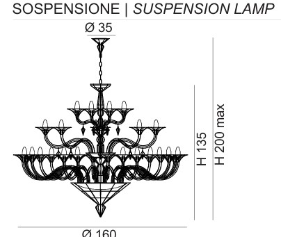 Technische Daten für "Metal Lux DEDALO 18flg. Ø160cm Draht Kronleuchter Chrome 192.128.01"