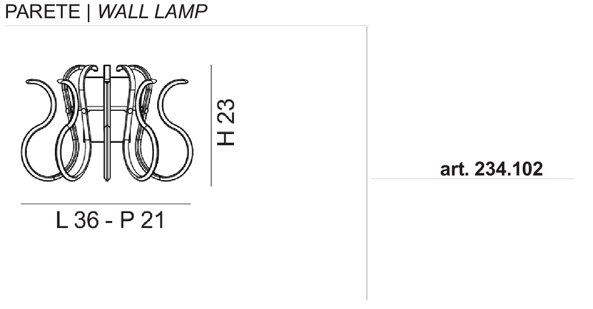 Technische Daten für "Metal Lux WAVE H23cm Wandleuchte Kristallglas Klar 234.102"