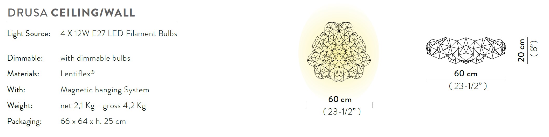 Technische Daten für "SLAMP DRUSA Ceiling/Wall Ø60cm E27 Deckenleuchte Gold"